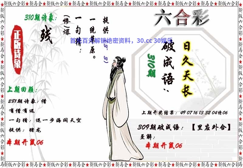 | 309期 | 0-1-2-3-5-6-7 | 鼠06准 |